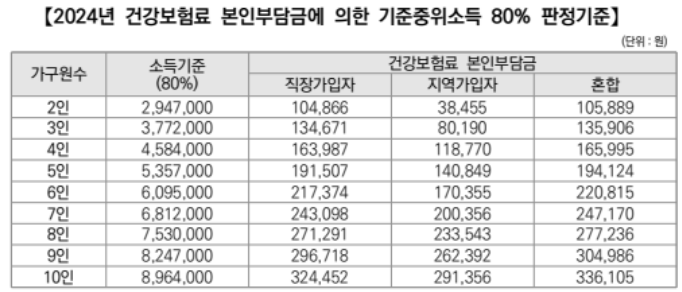 • 만 2세 미만(0~24개월)의 영아를 둔 기준중위소득 80% 이하의 다자녀(2인 이상) 가구